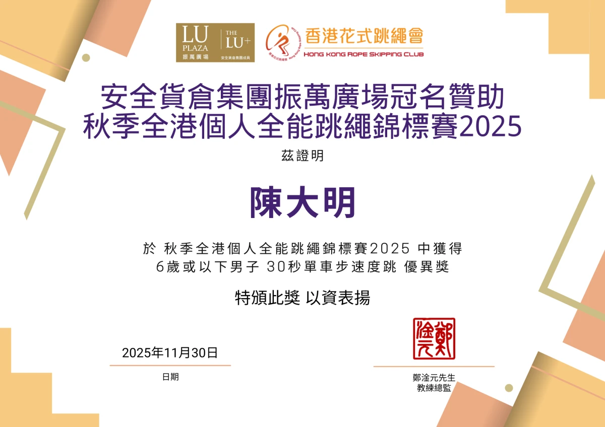 證書及獎牌